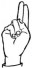 На ћирилици написано УРОШ КЛЕМЕНОВИЋ састоји се из 14 слова [?]. Исписано ћириличном једноручном азбуком за глувонеме: